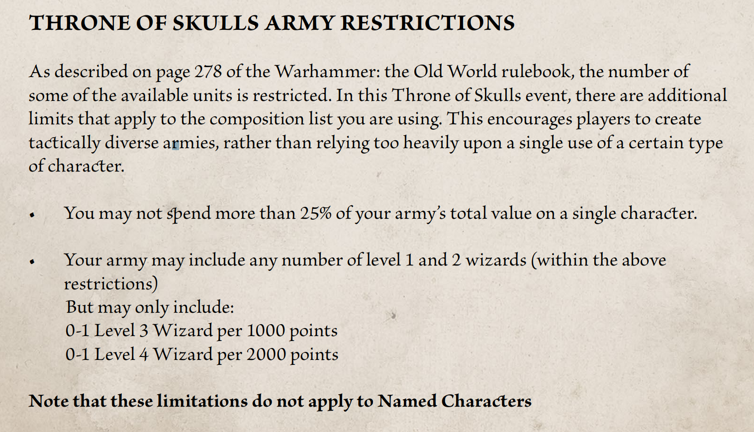 We knew it would be here but this does lead off by saying that you have to play an army from Ravening Hordes or Forces of Fantasy. It’s a shame they’re enforcing this but it was expected. It does mean that the metagame at GW events won’t reflect that of other events, though Vampire Counts are the main loss there.