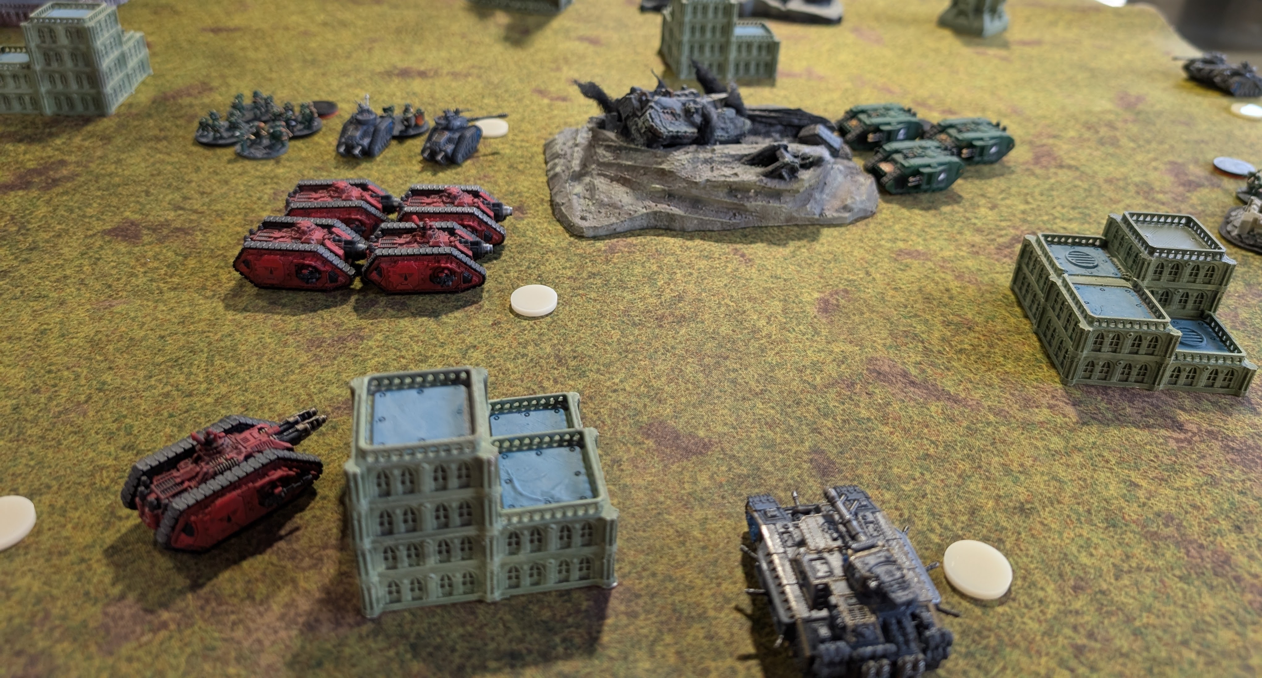 We were both light on infantry and suffered some large early losses to our infantry. This combined with me making a mistake on turn one (get on the objective idiot) lead to my opponent taking the early lead which I could never really catch up to.