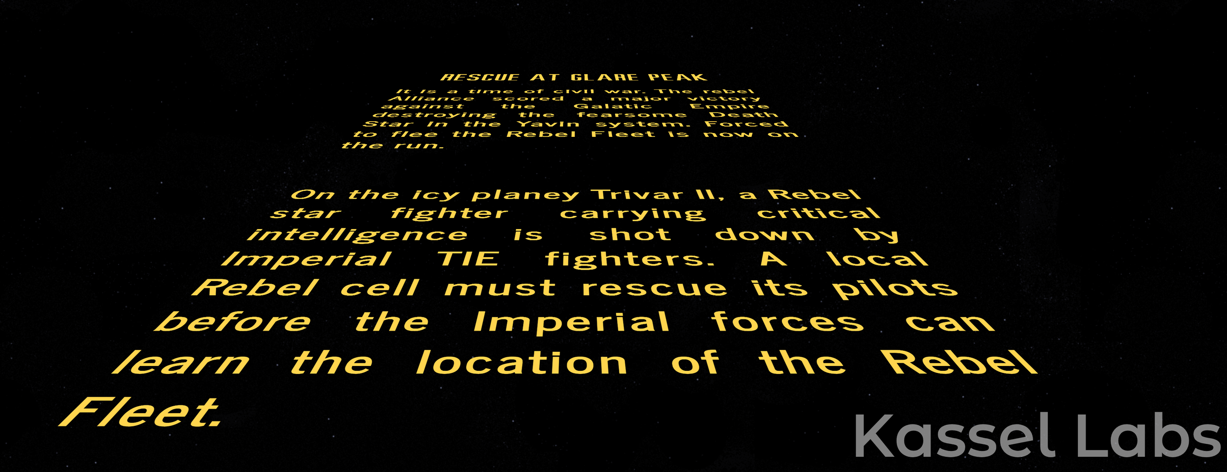 On the icy planet Trivar II, a Rebel star fighter carrying critical intelligence is shot down by Imperial TIE fighters. A local Rebel cell must rescue its pilots before the Imperial forces can learn the location of the Rebel Fleet.